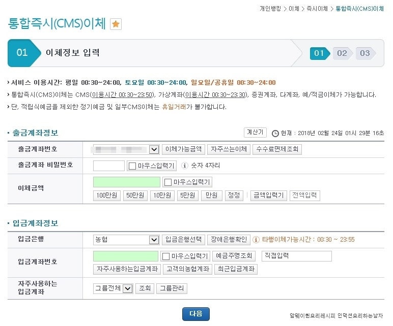 3. 농협인터넷뱅킹 주요 기능