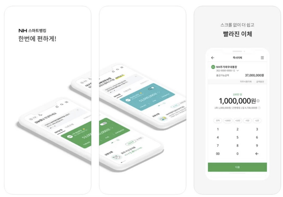 - 이체 서비스 : 타 은행 및 농협 계좌 간의 이체가 가능합니다.