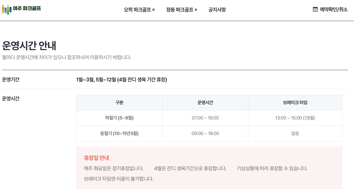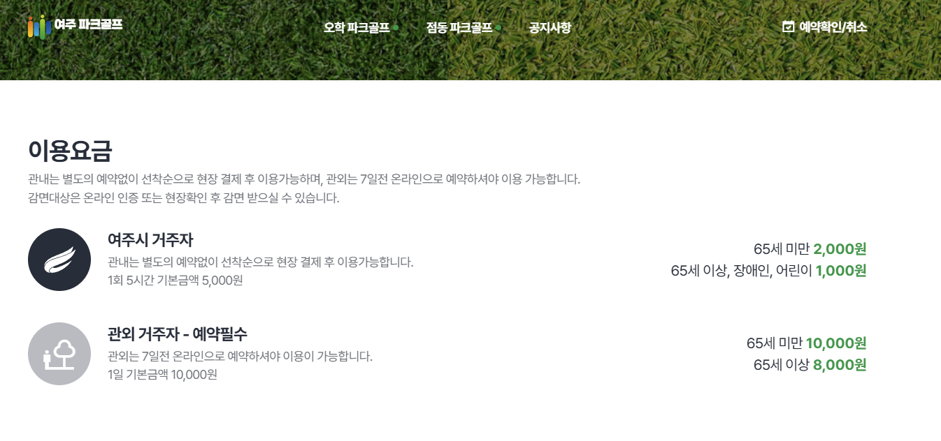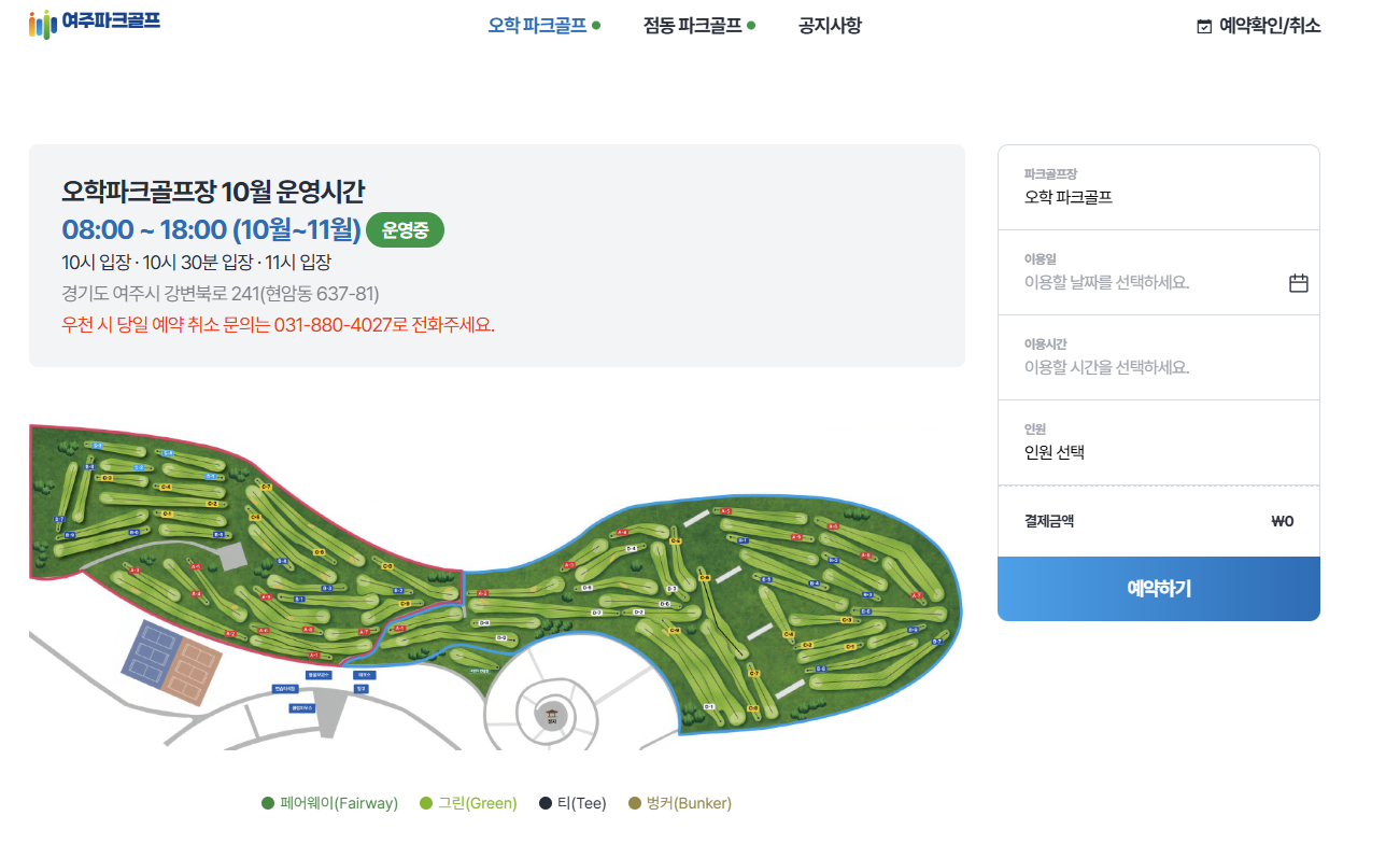 여주 파크골프장은 예약이 필수입니다. 예약은 온라인으로 진행되며, 이용 7일 전부터 가능합니다.