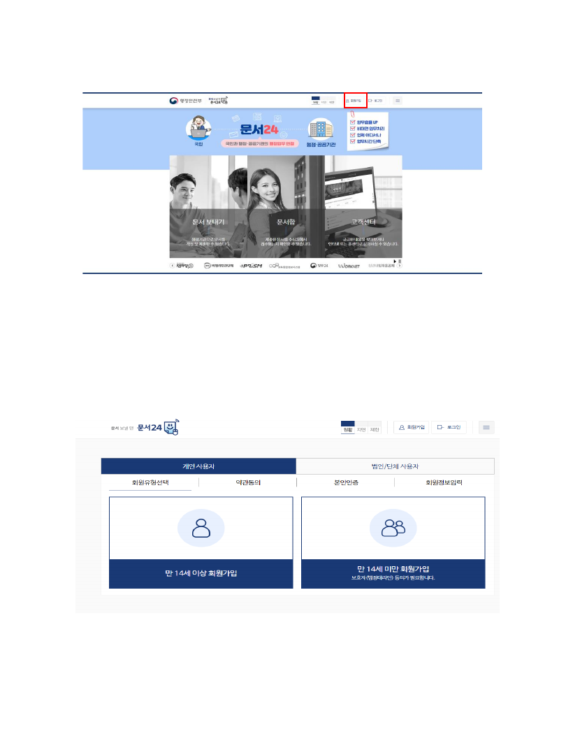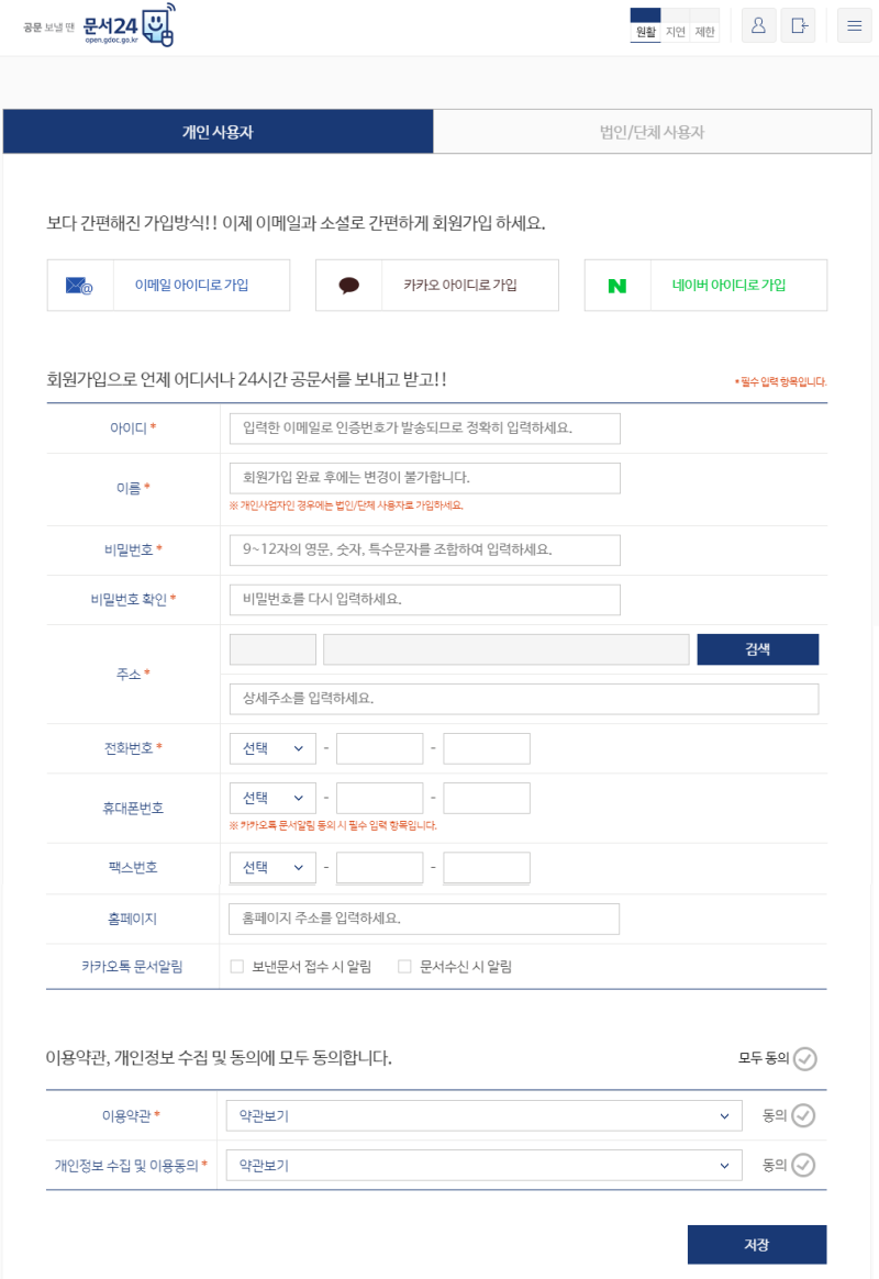 - 회원가입 : 문서24시 홈페이지에 접속하여 회원가입을 진행합니다. 필요한 정보를 입력하고 인증 절차를 완료합니다.