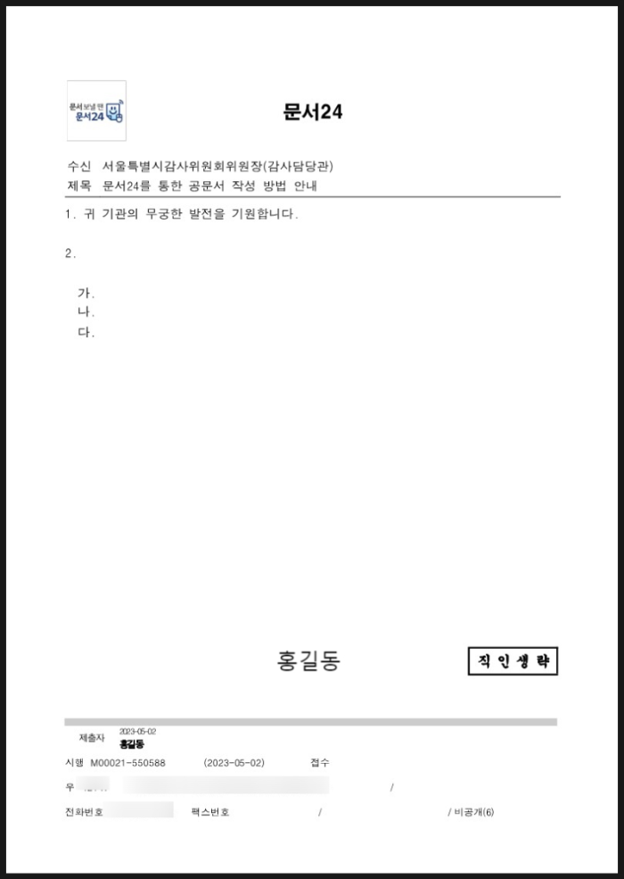 문서24시는 공문서 처리를 간편하게 만들어주는 유용한 서비스입니다. 이 서비스를 통해 시간과 비용을 절약하고,