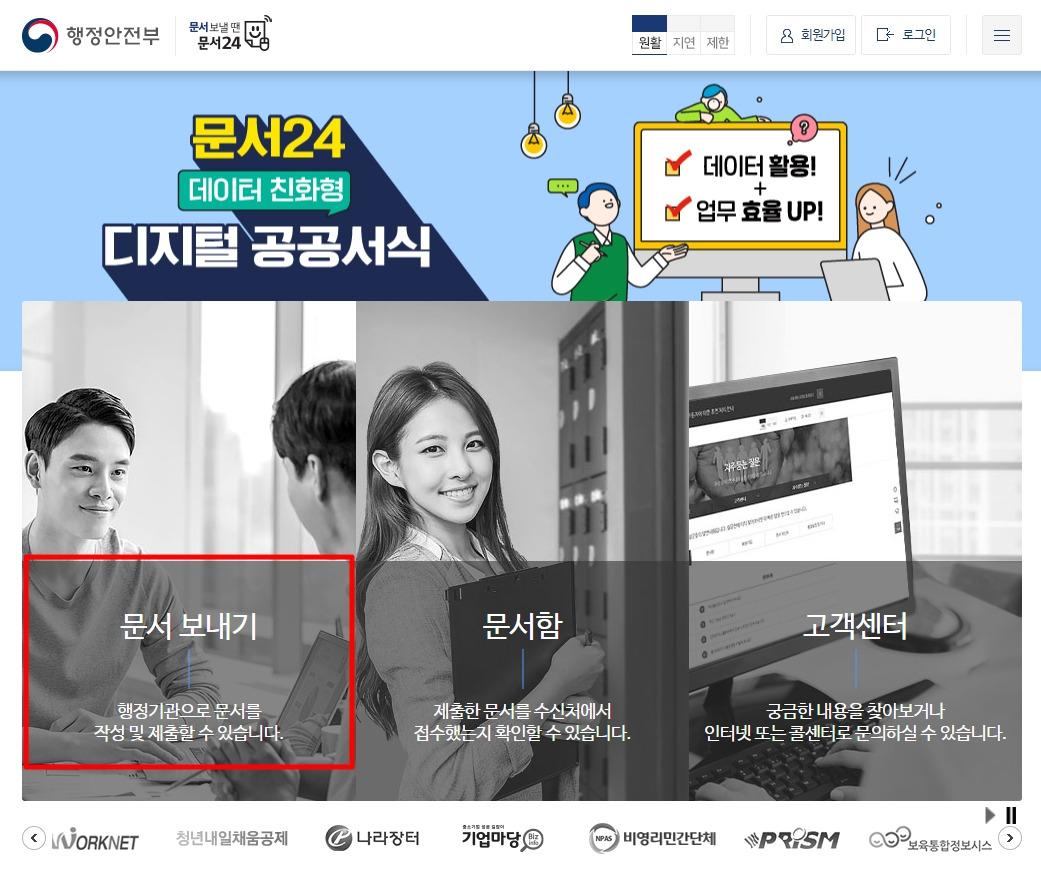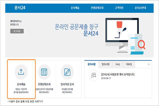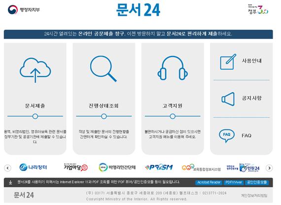 문서24시는 공문서의 전자적 처리를 위한 통합 서비스입니다.