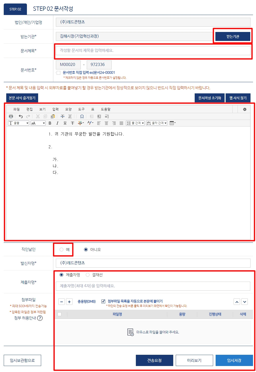 - 정확한 정보 입력 : 문서 작성 시, 수신처와 내용을 정확히 입력해야 합니다. 잘못된 정보는 문서 처리에 지연을 초래할 수 있습니다.
