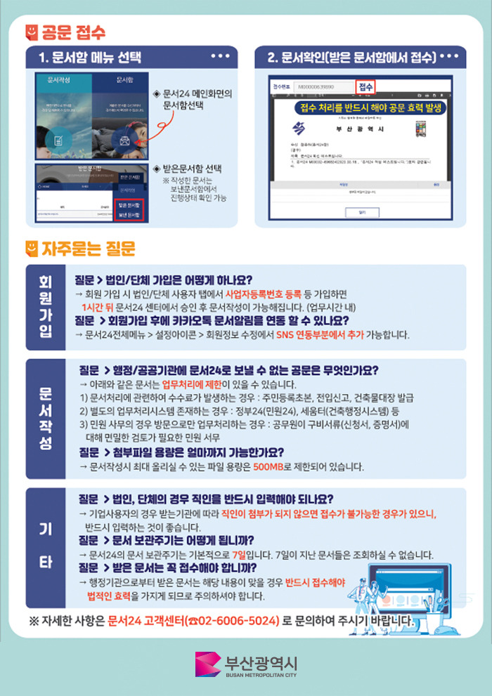 - 문서24시의 고객센터는 어떻게 이용하나요?