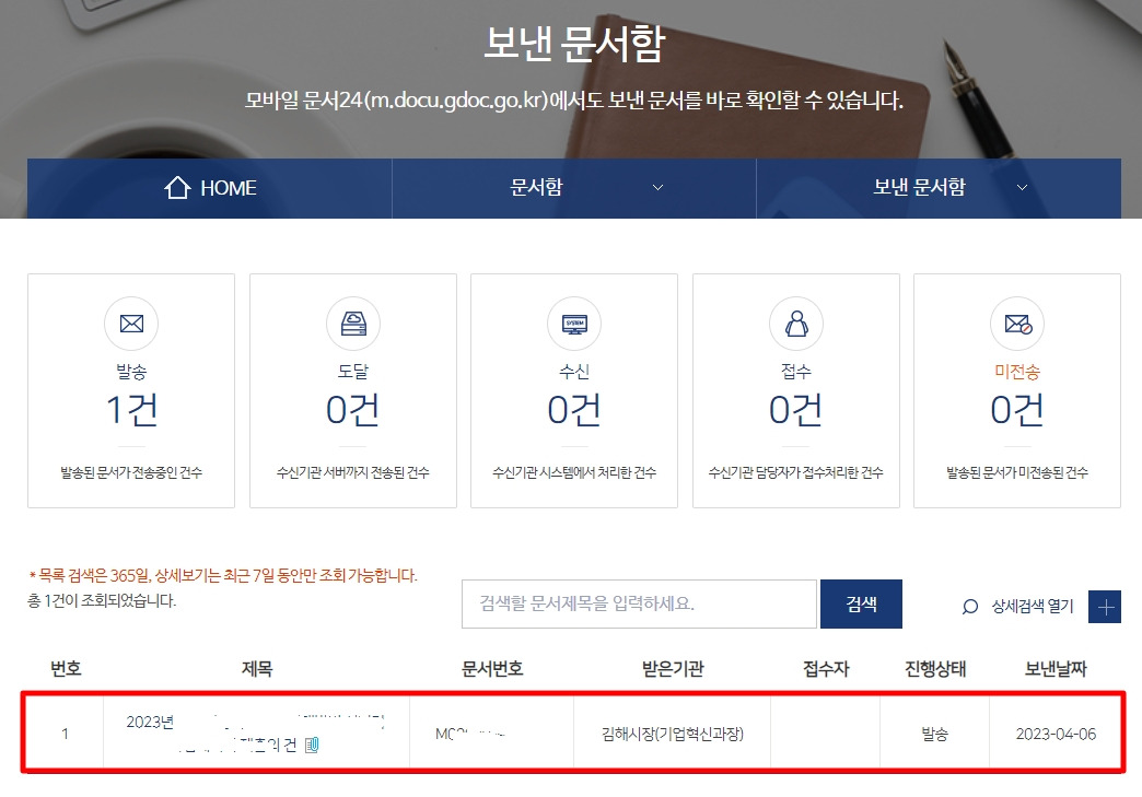 - 문서 추적 : 제출한 문서의 상태를 확인하여, 수신기관에서의 처리 상황을 체크합니다.