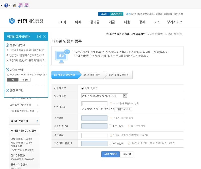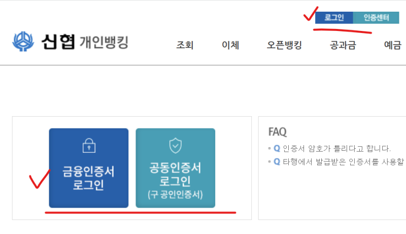신협 인터넷뱅킹 로그인 방법