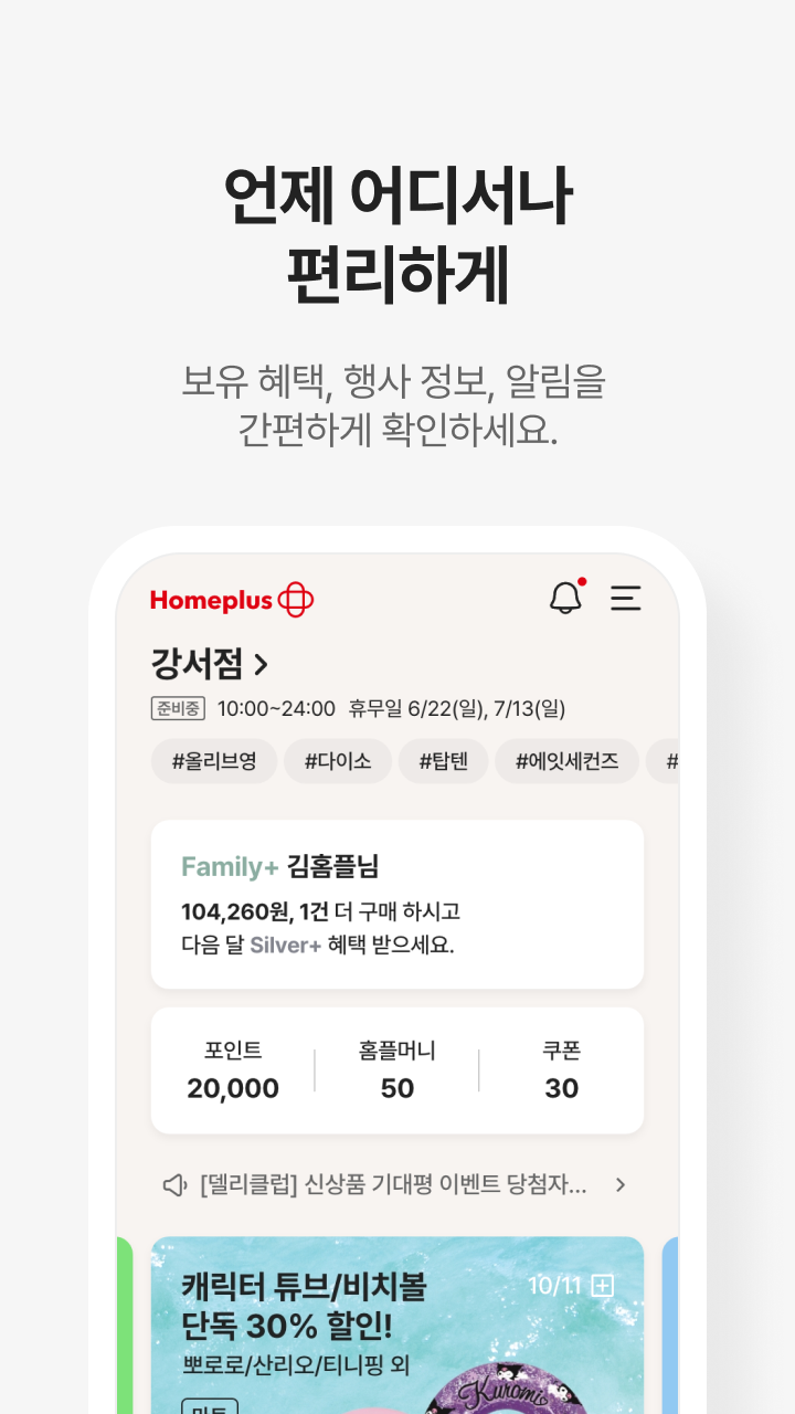 마이홈플러스는 적립금, 쿠폰, 이벤트 소식 등을 확인할 수 있는 공간입니다.