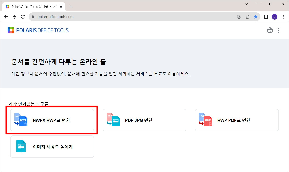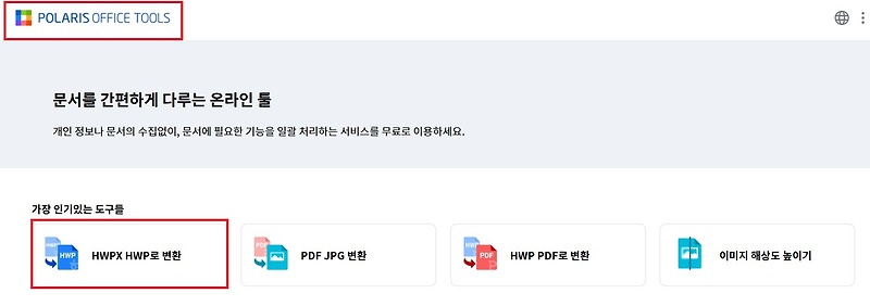 - 변환 도구 선택 : 여러 온라인 변환 도구가 있지만, 폴라리스 오피스 웹사이트를 추천합니다. 이 사이트는 무료로 HWPX 파일을 HWP로 변환할 수 있는 기능을 제공합니다.