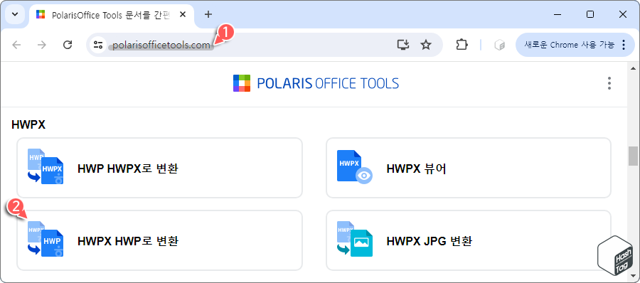 - 폴라리스 오피스 : HWPX 파일을 HWP로 변환할 수 있는 가장 간편한 도구입니다. 서버에 파일을 업로드하지 않고도 변환할 수 있어 개인 정보 보호에도 유리합니다.