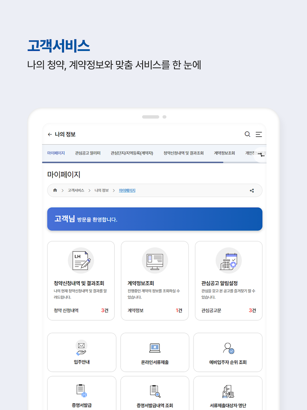 LH청약센터는 한국토지주택공사(LH)에서 제공하는 임대주택 청약 시스템입니다.