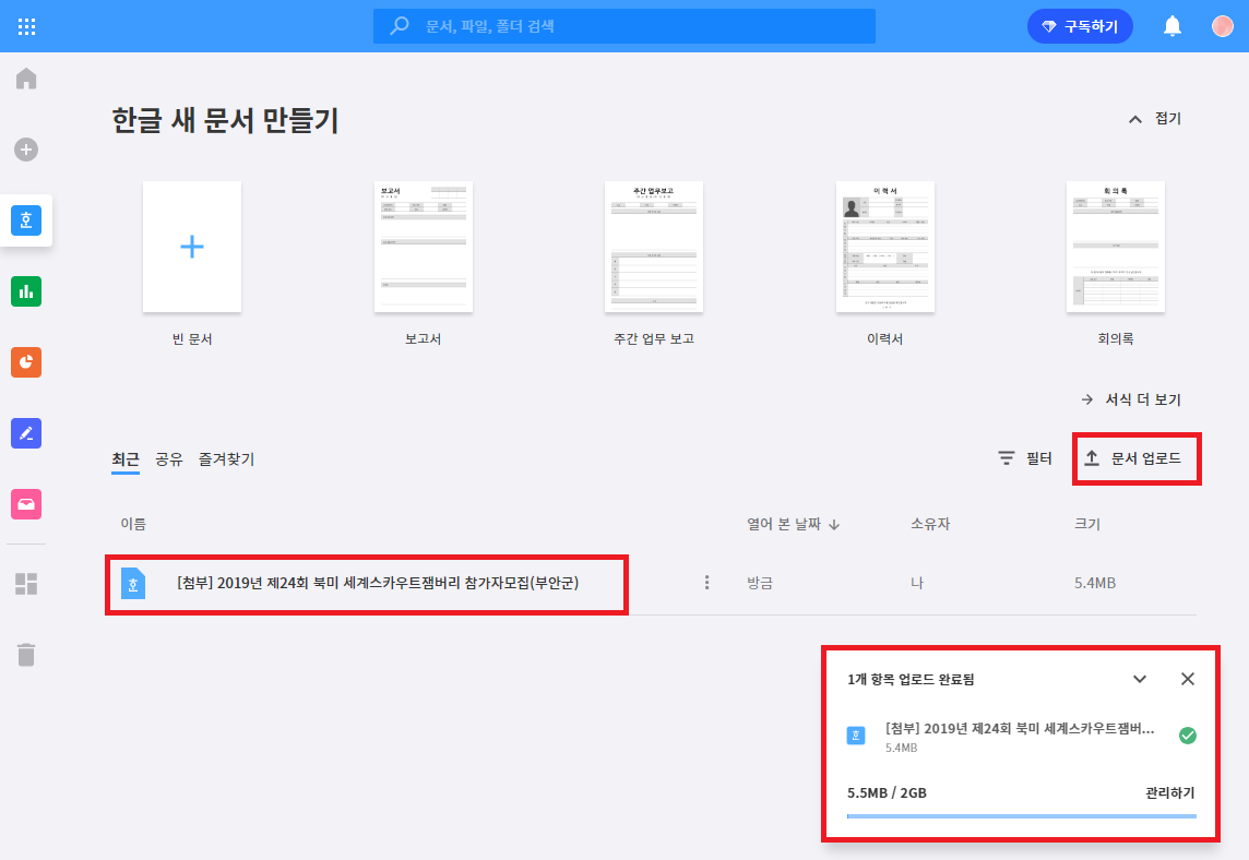 이제 한글뷰어 파일이 다운로드되었습니다!