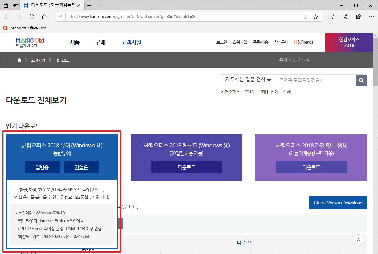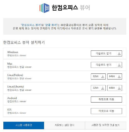 - 한글과컴퓨터 공식 홈페이지 방문 : 한글뷰어 다운로드 페이지로 이동합니다.
