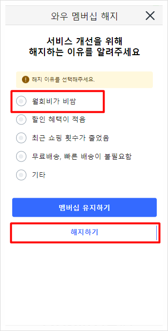 쿠팡 와우회원 탈퇴 방법