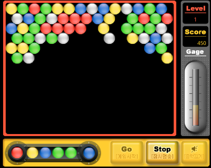 같은색 공맞추기 게임은 주어진 색깔의 공을 조준하여 같은 색의 공을 맞추는 방식으로 진행됩니다.