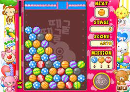 일반적으로 3개 이상의 같은 색깔의 공이 모이면 사라지며, 이 과정을 반복하여 화면에 있는 모든 공을 없애는 것이 목표입니다.