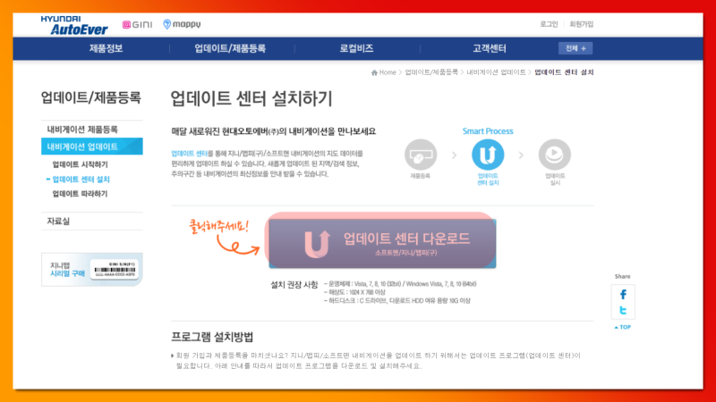 - 업데이트 파일 다운로드 : 홈페이지에서 최신 업데이트 파일을 다운로드합니다. 이때, 사용 중인 네비게이션 모델에 맞는 파일을 선택해야 합니다.