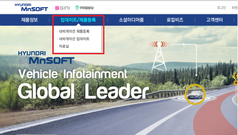 - 회원가입 : 현대엠엔소프트 홈페이지에 접속하여 회원가입을 합니다. 회원가입 후 로그인합니다.