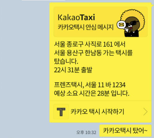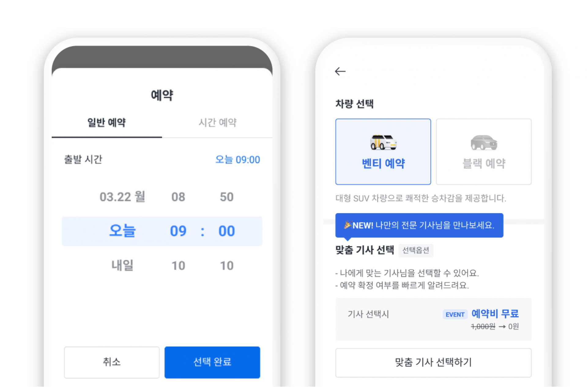 - 요금은 택시 종류에 따라 다르며, 앱 내에서 미리 확인할 수 있습니다.