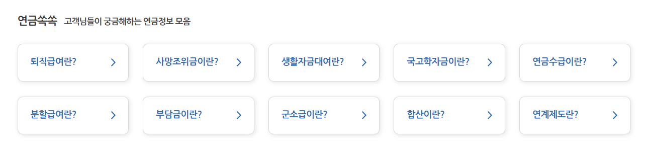 상단 메뉴에서 연금 신청, 복지 서비스, 공지사항 등을 직접 클릭하여 필요한 정보를 신속하게 확인할 수 있습니다.