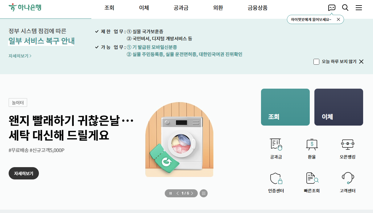 하나은행 개인인터넷뱅킹을 통해 더욱 편리한 금융 생활을 누리시기 바랍니다.