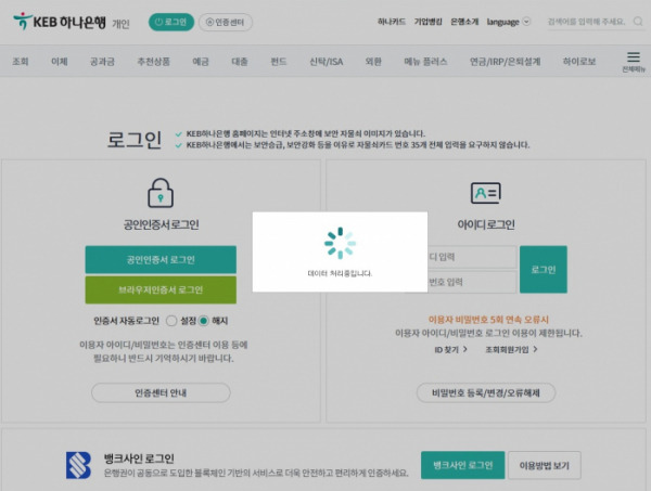 하나은행 개인인터넷뱅킹 보안 및 안전성