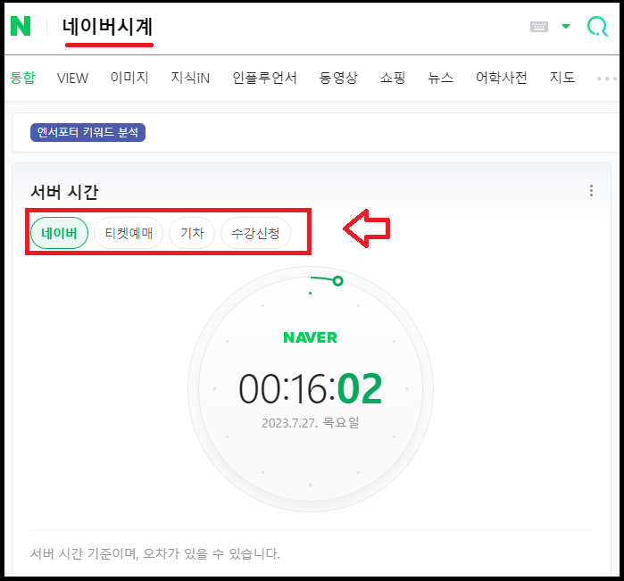 - 네이버 검색창에 "네이버 초시계"를 입력합니다.