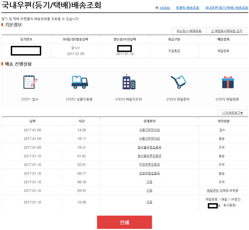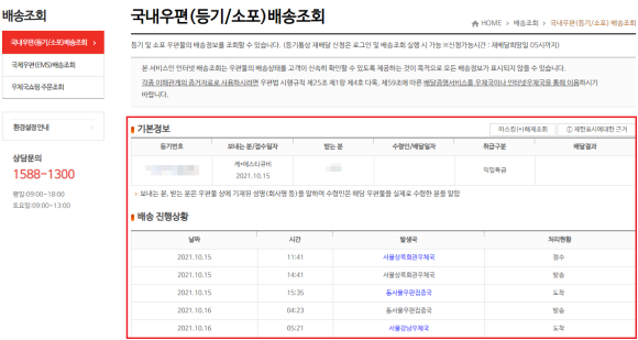 - 조회 버튼 클릭 : 입력 후 조회 버튼을 클릭하면 우편물의 현재 상태와 위치를 확인할 수 있습니다.