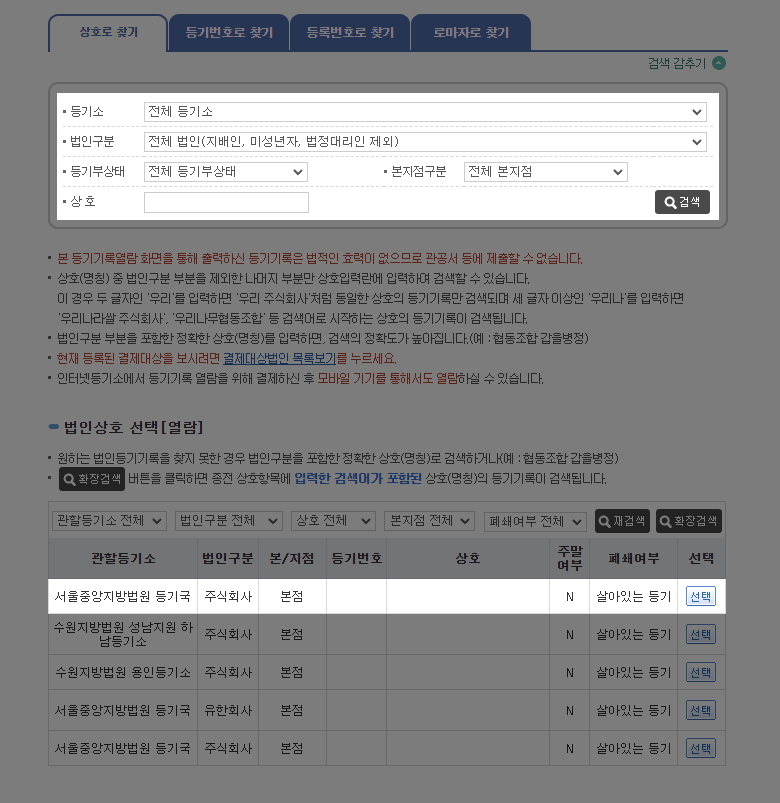 4. 등기번호 없이 조회하는 방법