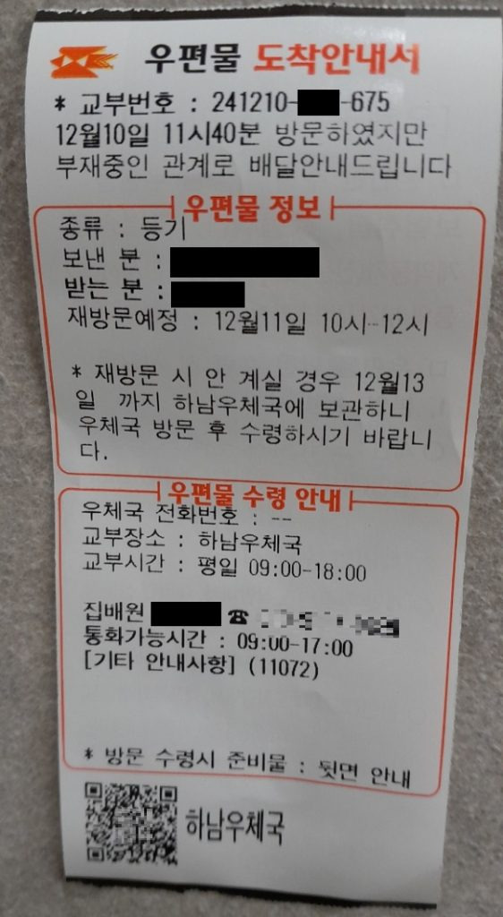 - Q: 조회 결과가 나오지 않아요. 왜 그런가요? A: 입력한 정보가 정확한지 다시 확인해 보시기 바랍니다. 또한, 우편물이 아직 발송되지 않았거나 시스템에 반영되지 않았을 수 있습니다.