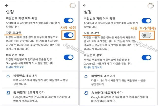 - 자동 로그인 해제 : "자동 로그인" 옵션을 비활성화합니다.