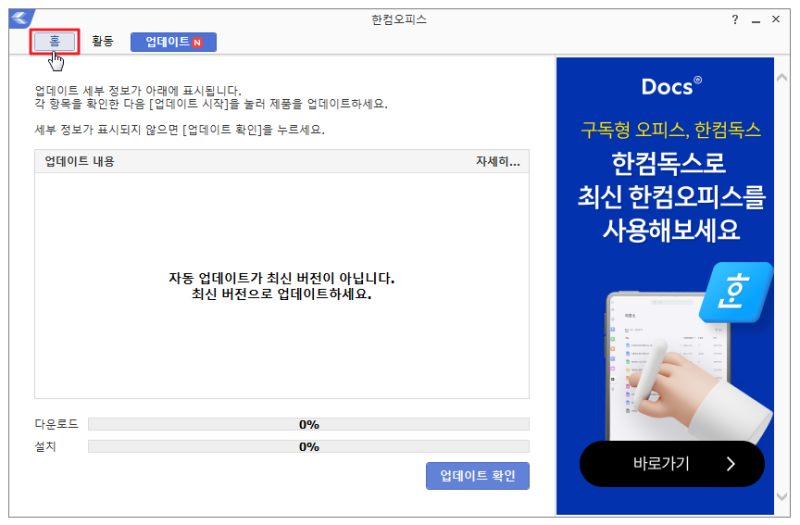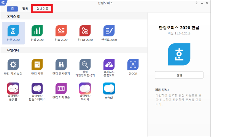 - 프로그램 실행 : 한컴오피스를 실행합니다.
