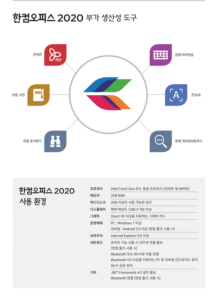 한컴오피스 2020은 한글과 컴퓨터에서 개발한 오피스 프로그램으로, 특히 한글 문서 작성에 강점을 가지고 있습니다.