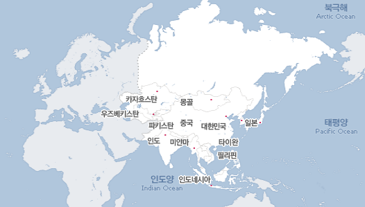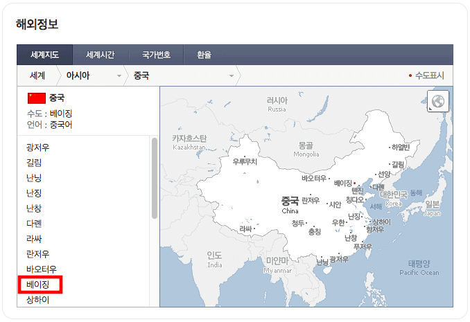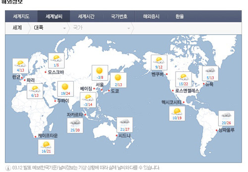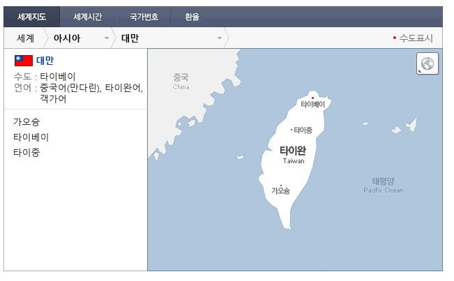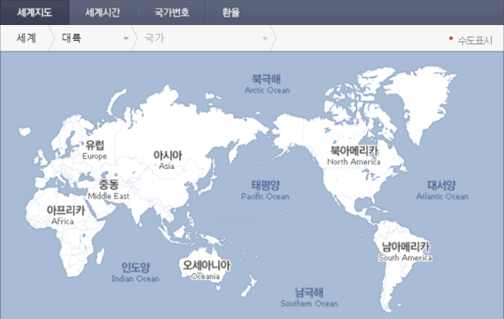 웹사이트에 접속한 후 "공간 정보" 메뉴를 선택하고 세계지도를 클릭하면, 바로 큰 화면으로 지도를 볼 수 있습니다.