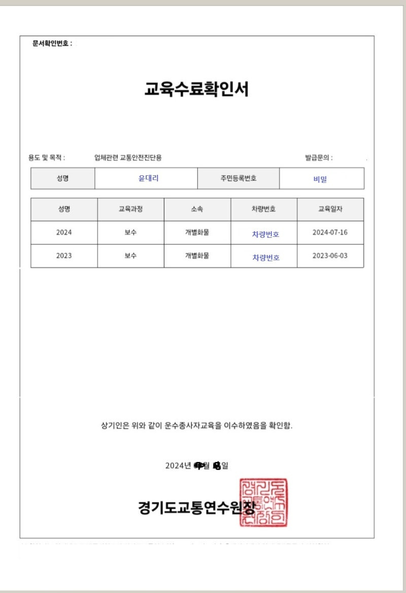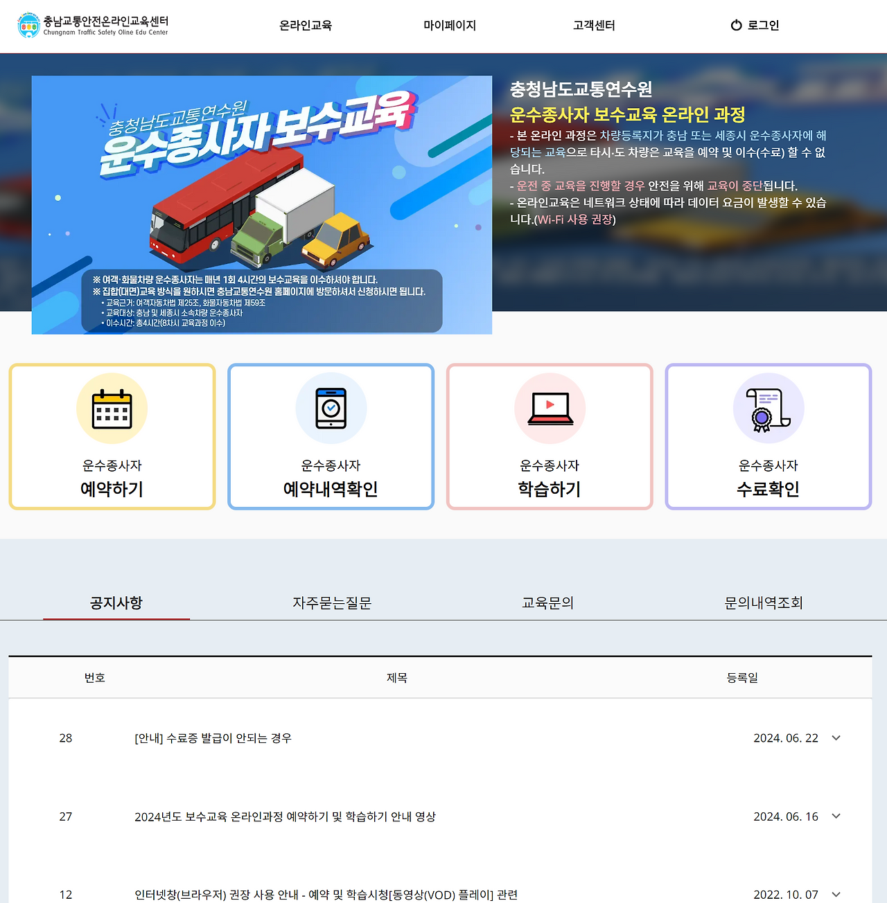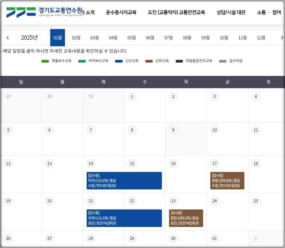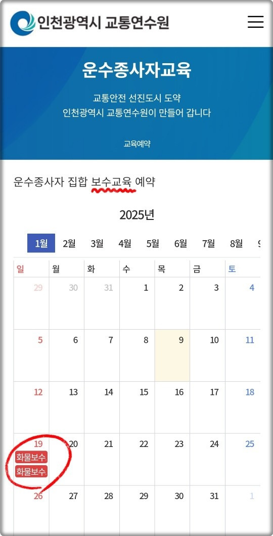 - 인천교통연수원 운수종사자 집합 보수교육 예약