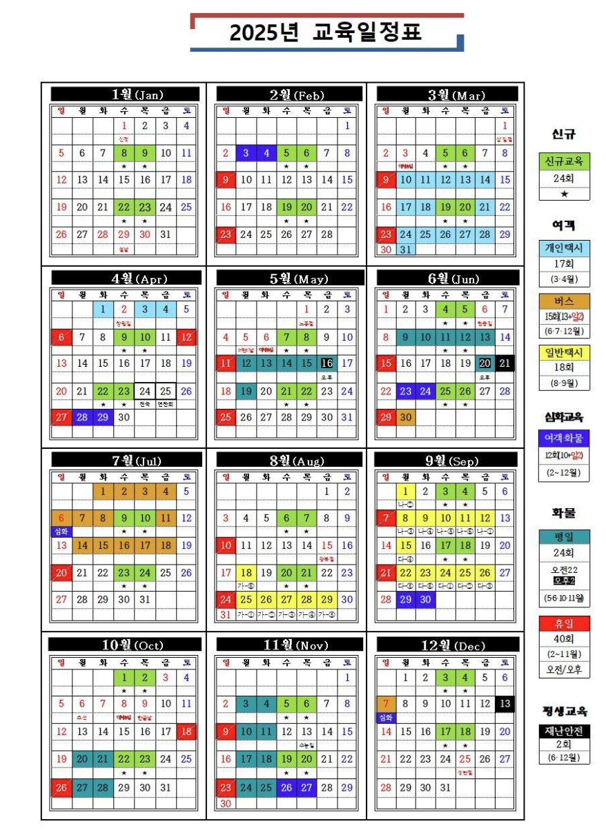 - 교통 법규 : 최신 교통 법규 및 규정에 대한 교육