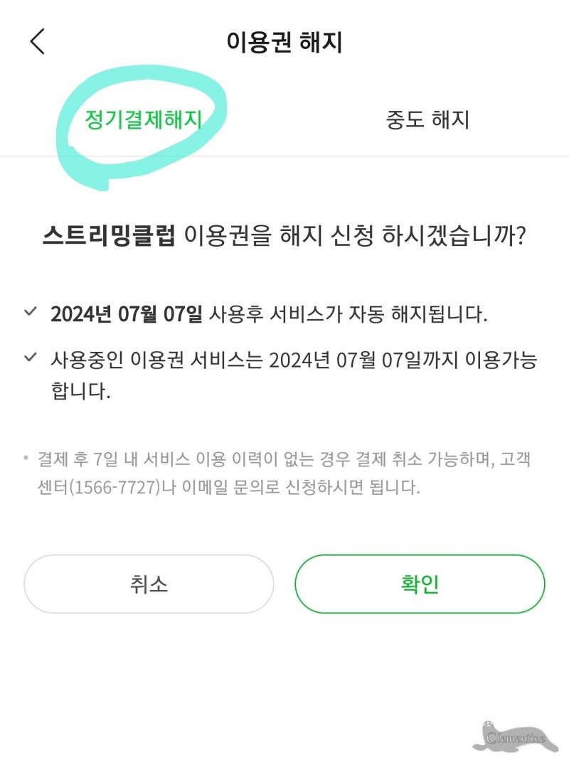 - '정기결제 해지' 버튼을 클릭하여 해지 신청을 진행합니다.