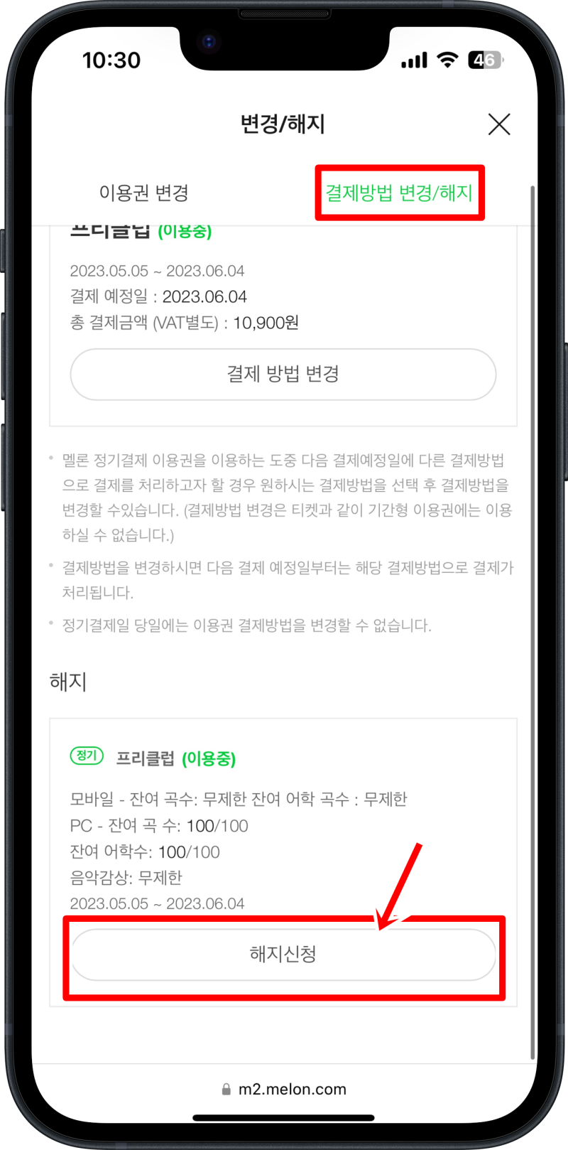 - 멜론 앱에 로그인하여 해지 상태를 확인하는 방법도 있습니다.