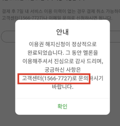 - 해지 요청 후 멜론에서 발송하는 확인 이메일을 통해 해지가 완료되었는지 확인할 수 있습니다.