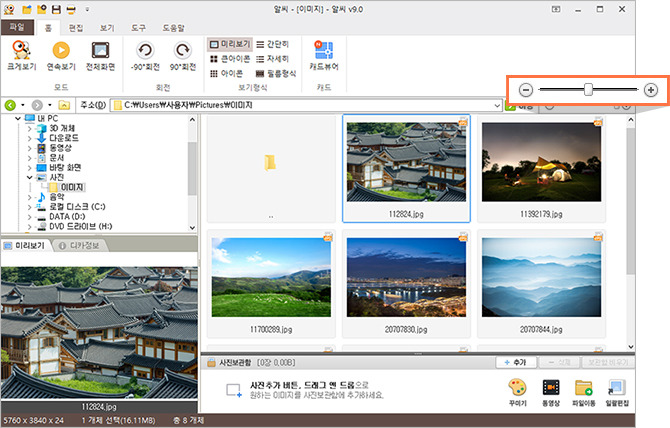 - 슬라이드쇼 기능 : 여러 이미지를 한꺼번에 보여주는 슬라이드쇼 기능이 있어, 사진을 감상하는 데 편리합니다.