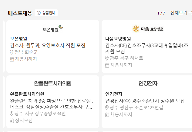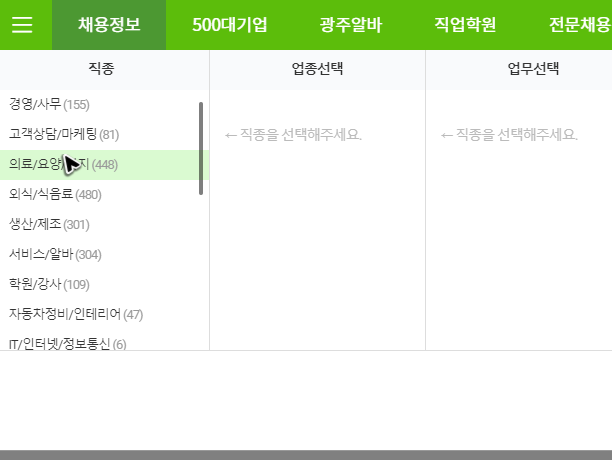 광주 지역의 인기 직종