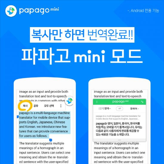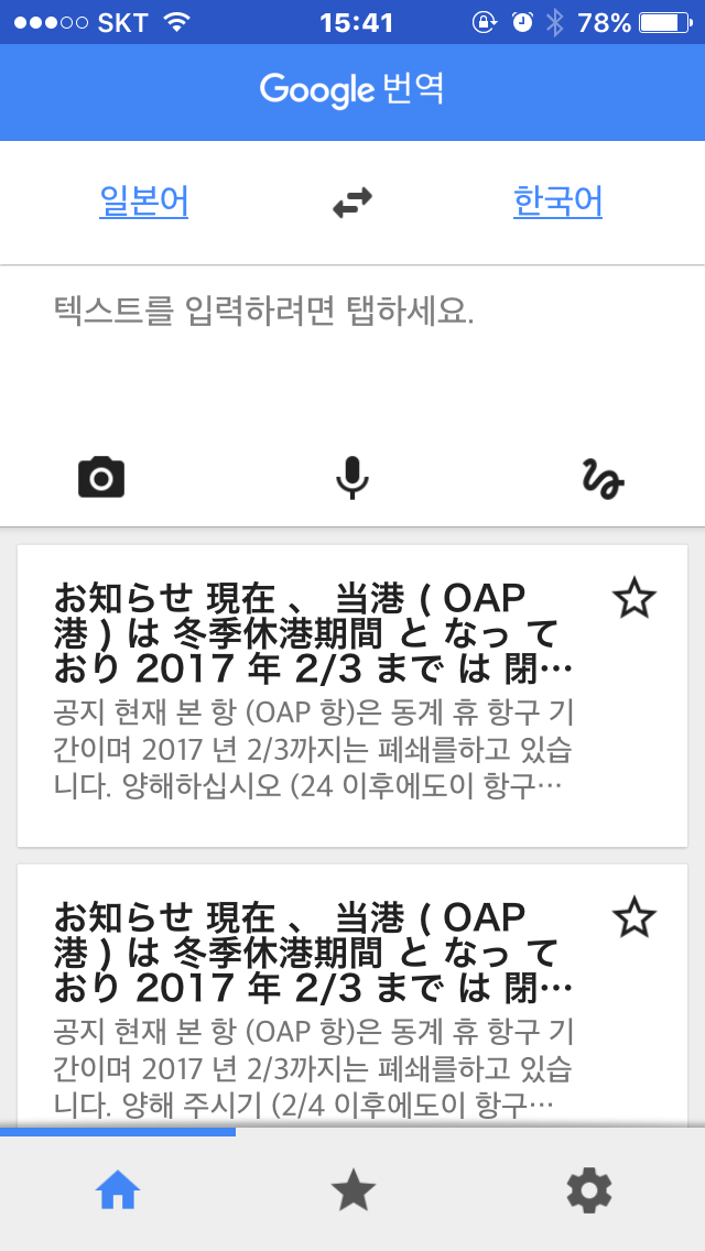 모바일 어플을 통해 오프라인에서도 사용할 수 있어 데이터 요금 걱정 없이 번역할 수 있는 장점이 있습니다.
