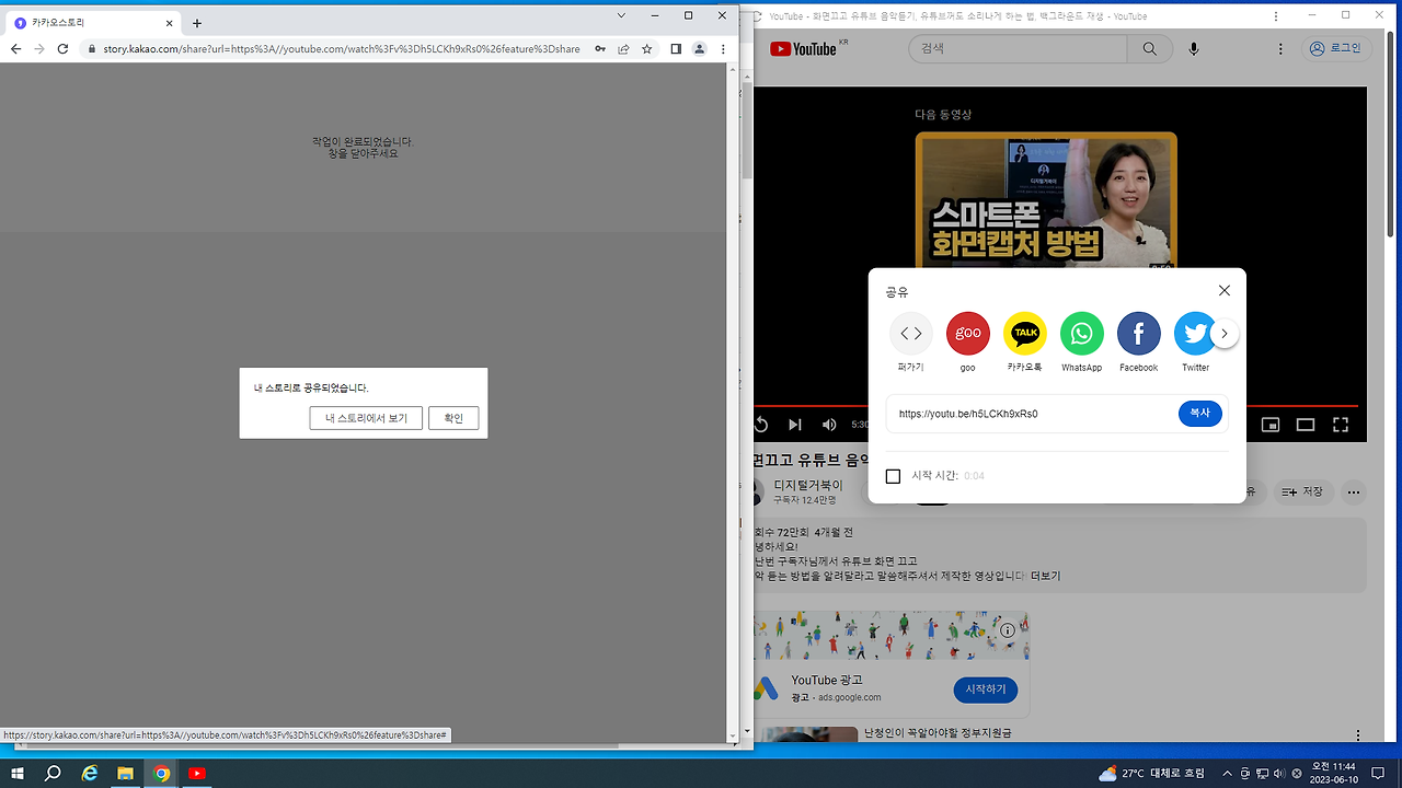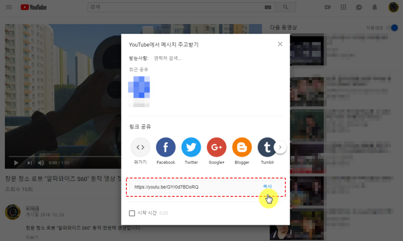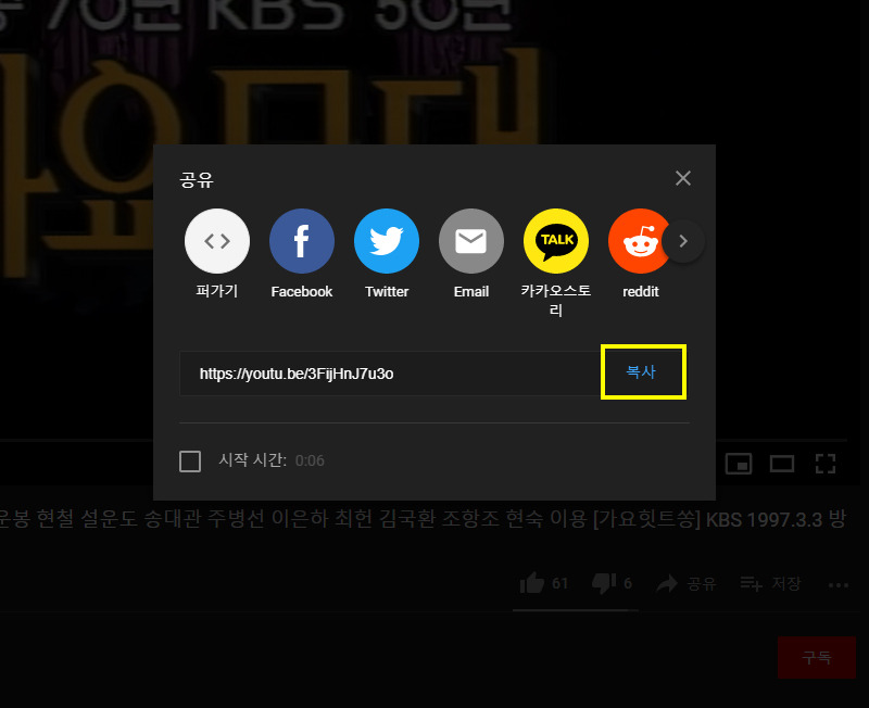 유튜브 동영상 링크 복사하는 방법