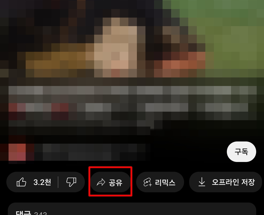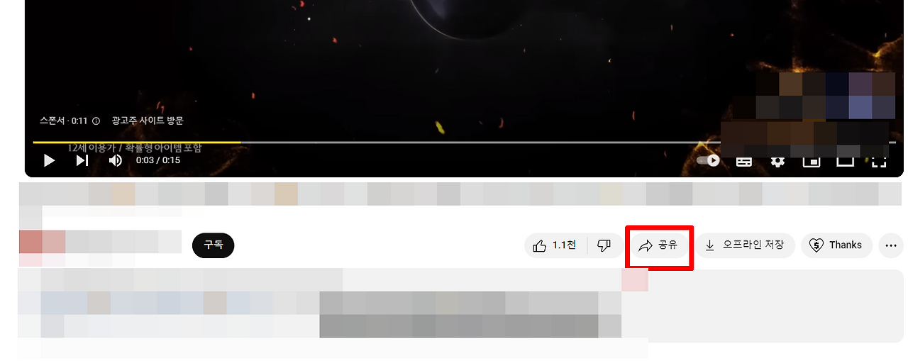 - 동영상 아래에 있는 '공유' 버튼을 클릭합니다.
