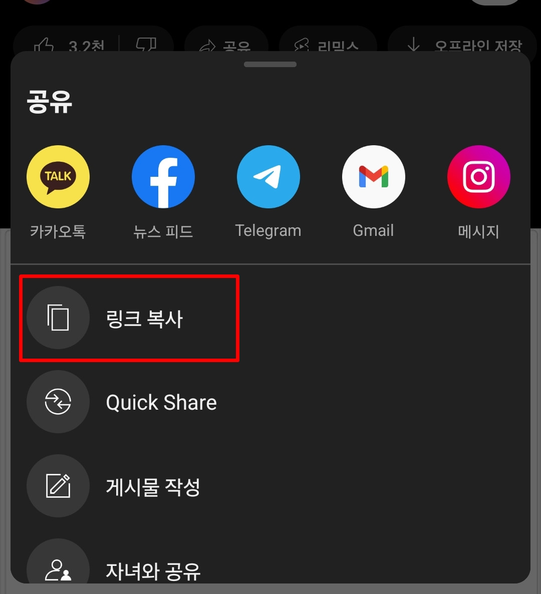 이렇게 간단하게 링크를 복사할 수 있습니다. 더불어, 유튜브 앱에서도 동일한 방법으로 링크를 복사할 수 있습니다.
