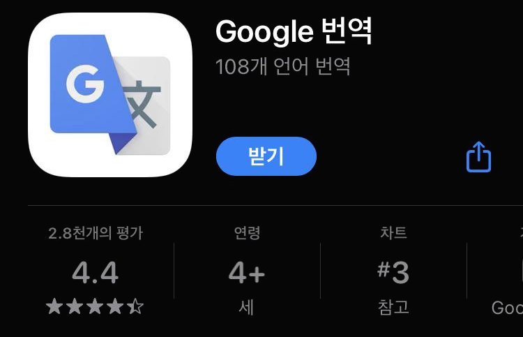 앱 스토어에서 "구글 번역"을 검색하여 다운로드 후, 설치한 앱을 열면 다양한 기능을 사용할 수 있습니다.