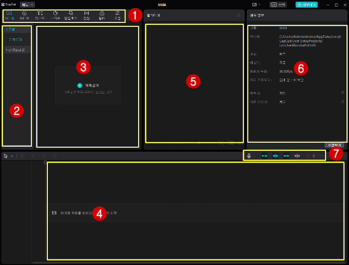 - 프로젝트 생성 : 메인 화면에서 "새 프로젝트"를 클릭하여 새로운 편집을 시작합니다.
