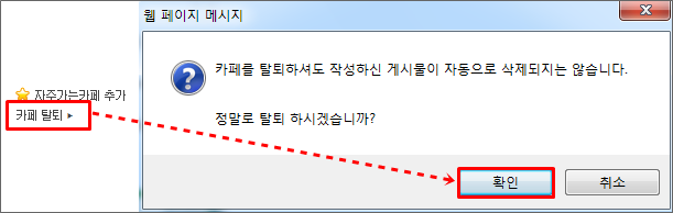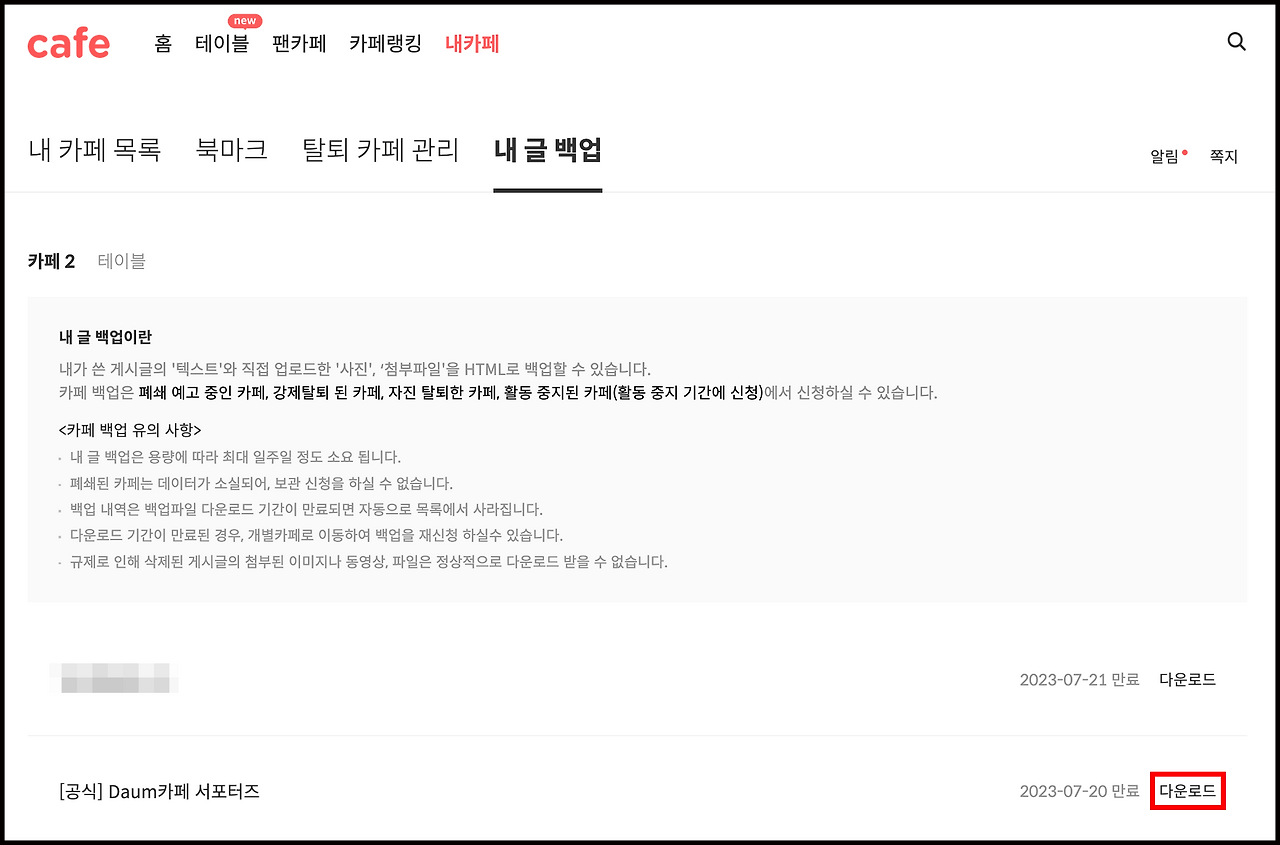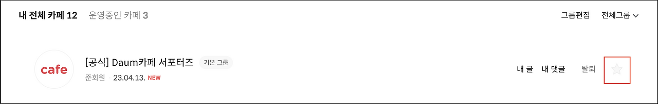 - 내 카페 메뉴 찾기 : 로그인 후, 상단 메뉴에서 '내 카페'를 클릭합니다.
