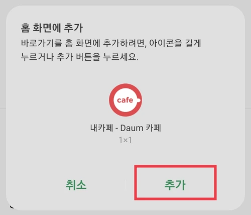 - 홈화면 추가 : 카페 정보 페이지 내에서 '홈화면 추가' 기능을 선택합니다. 이렇게 하면 모바일 홈 화면에 카페 바로가기가 추가됩니다.