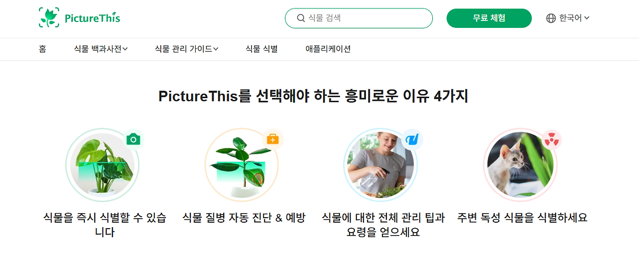 이 어플은 특히 한국의 식물에 대한 정보가 풍부하여, 한국에서 자주 볼 수 있는 식물들을 쉽게 식별할 수 있습니다.