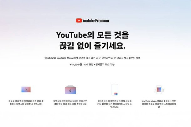 - 유튜브 프리미엄 : 광고 없이 동영상을 시청하고, 오프라인에서도 감상할 수 있는 유료 서비스입니다.